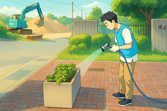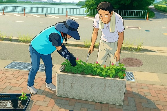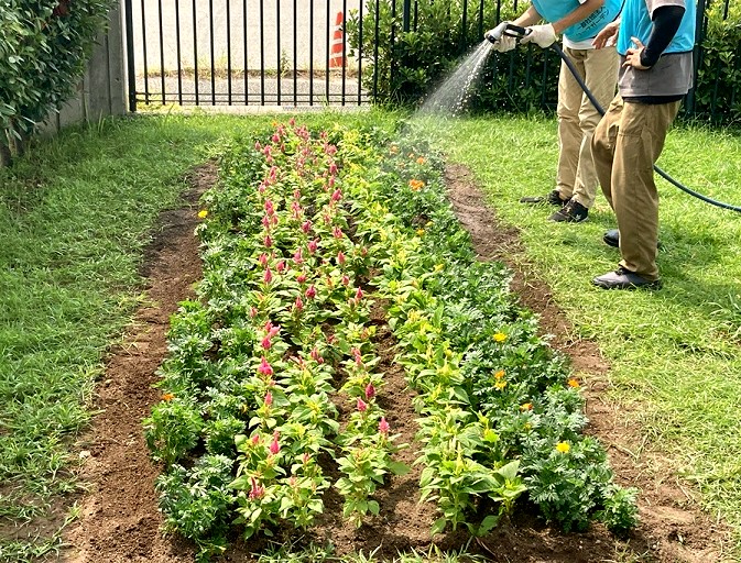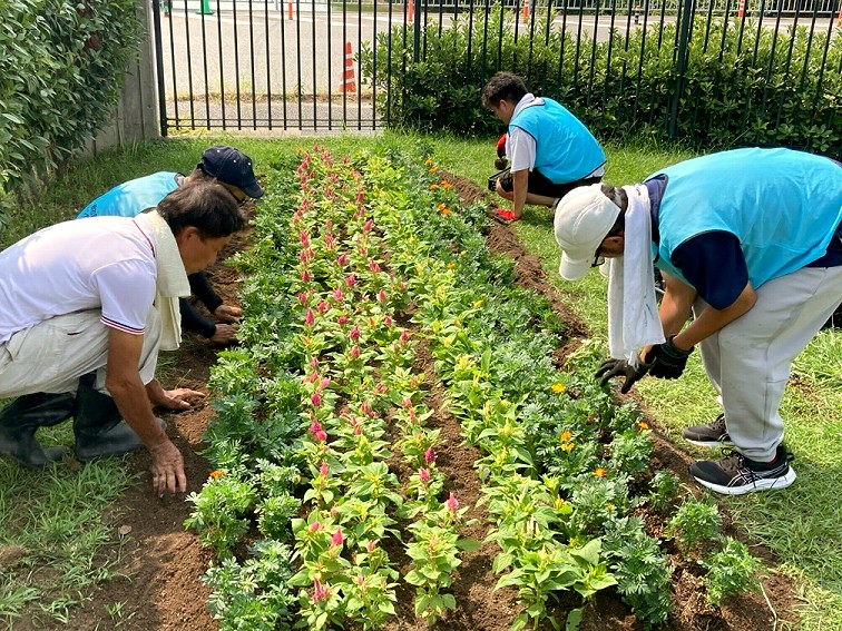 明石市大久保町の明石北わんぱく広場で花の植替え。