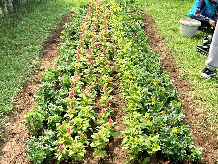 マリーゴールド220本、ジニア(百日草)24本、ケイトウ232本、