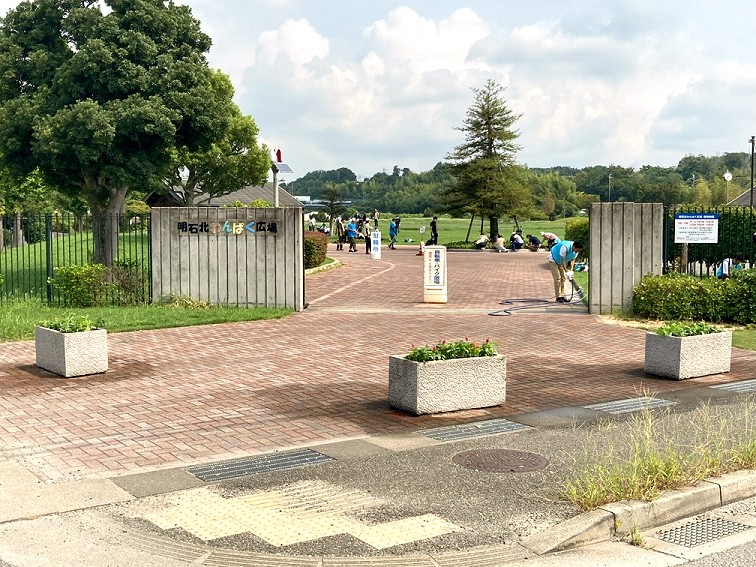 明石北わんぱく広場は、美しい芝生で覆われた芝生公園。