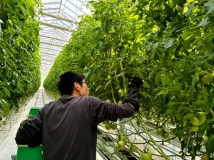 JAでトマトの葉の剪定やトマトの袋詰め作業をしました。