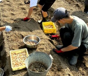 にんにくの植付をしました。石拾いもしながらの作業です。