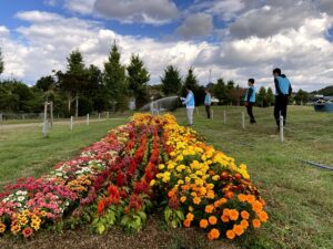 明石駅前の花壇の植替えを行いました。植えた花はケイトウ、百日草、テルスター また、明石市大久保町のわんぱく広場の担当花壇で土壌改良を行いました。